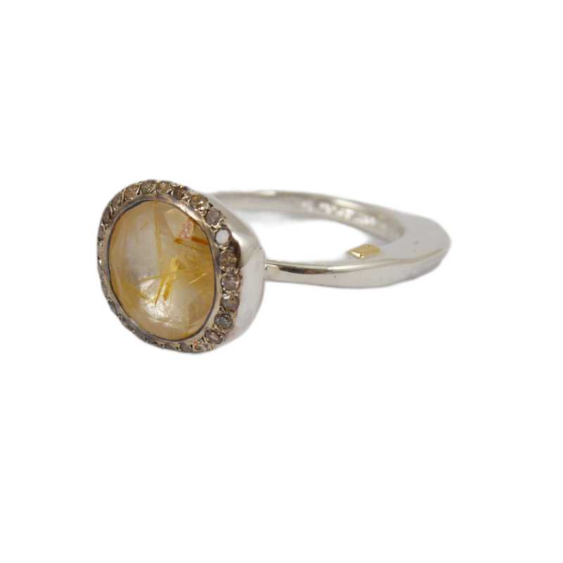 ルチレイテッド ゴールデンクォーツとコニャックダイヤモンドをあしらったベガムリング。