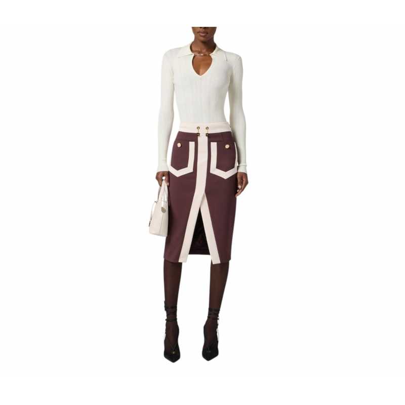 Polo col bijoux milk rayé uni Elisabetta Franchi Femme MK09B DZ9