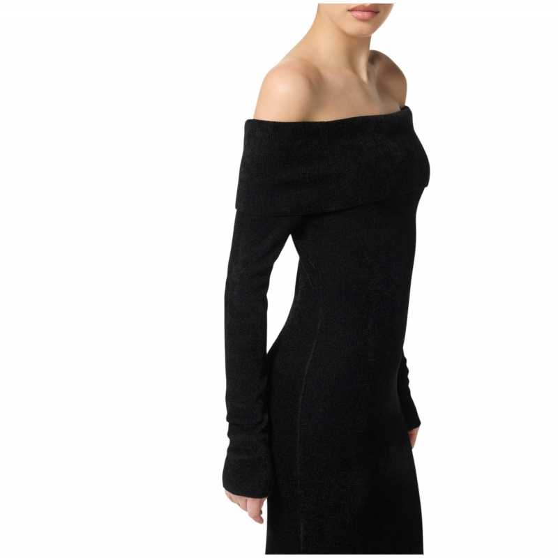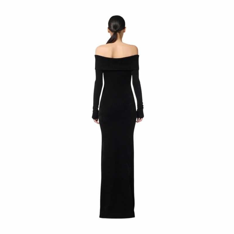 robe longue Elisabetta Franchi, robe de soirée noire femme, robe col bateau élégante, robe Red Carpet velours, robe italienne chic, robe ajustée noire.