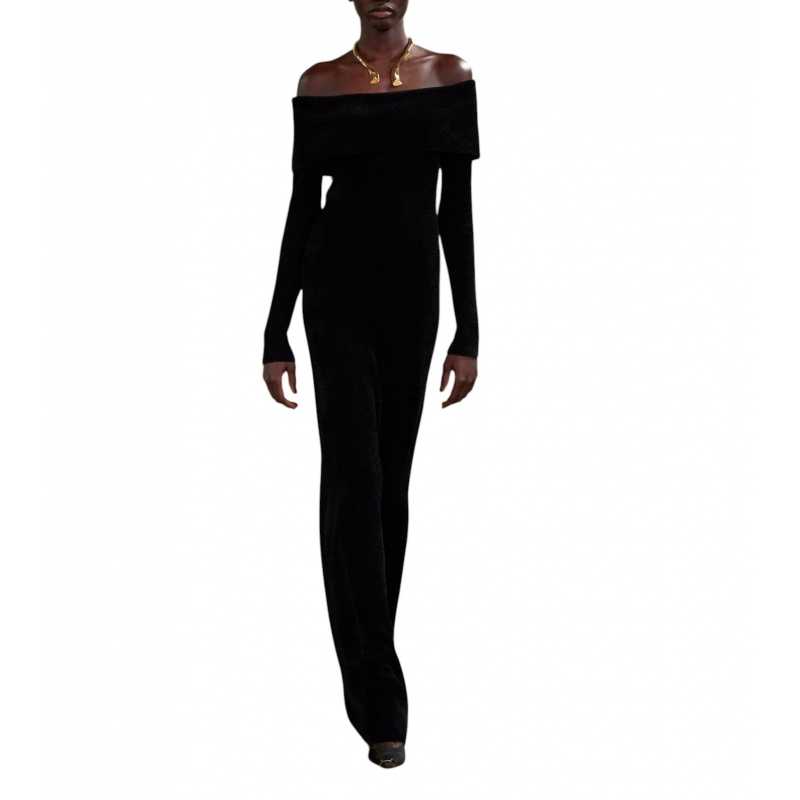 Robe longue de couleur noir touché velours avec manches longues et col bateau de la marque Elisabetta Franchi pour femme réf AM34S 110