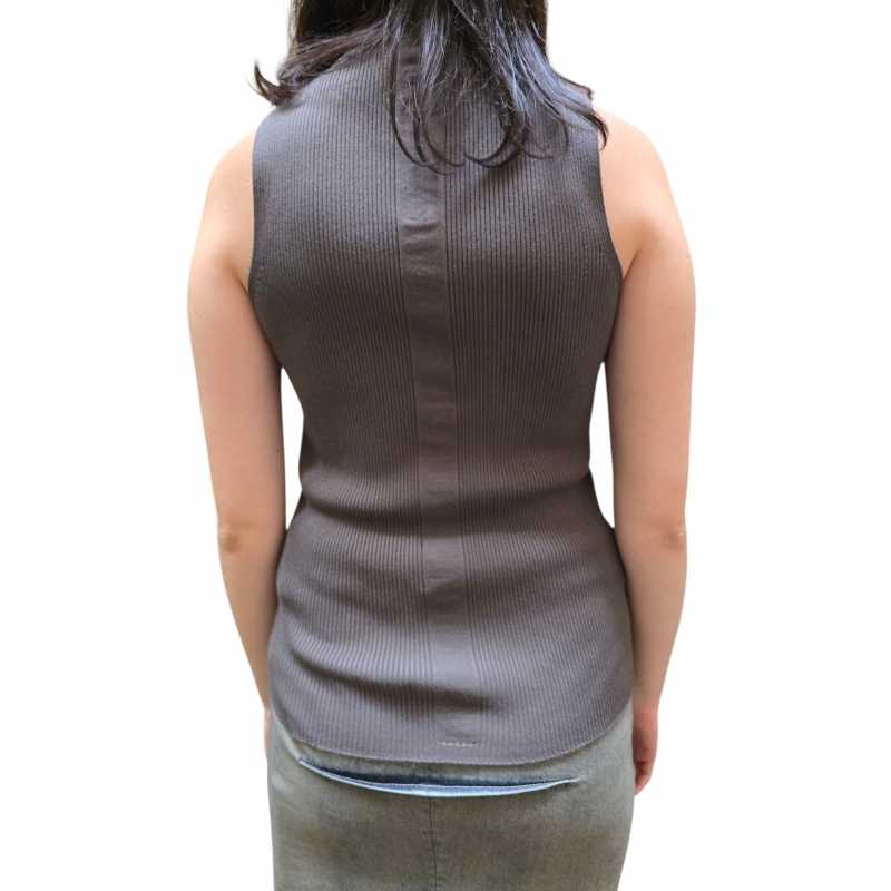 リック・オウエンスによる女性用ダークダスト(ブラウン)カラーのリブタンクトップ、ヴィスコースニット、商品番号 RP02E 4635 RIBVI 78