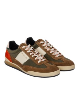 Zapatillas modelo Dover de nailon verde, ante café, parte trasera de ante naranja y spoiler blanco con el logotipo de la marca Paul Smith para hombre, ref. M2S DVR97 UNYL 63.